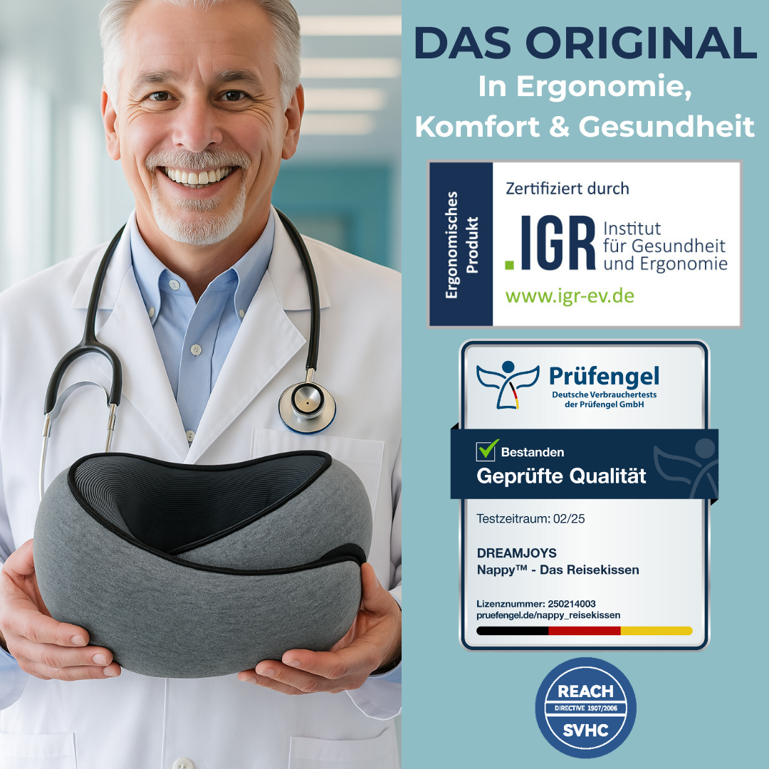 der Anwender sind überzeugt: Einmal Nappy – nie wieder ein normales Reisekissen.