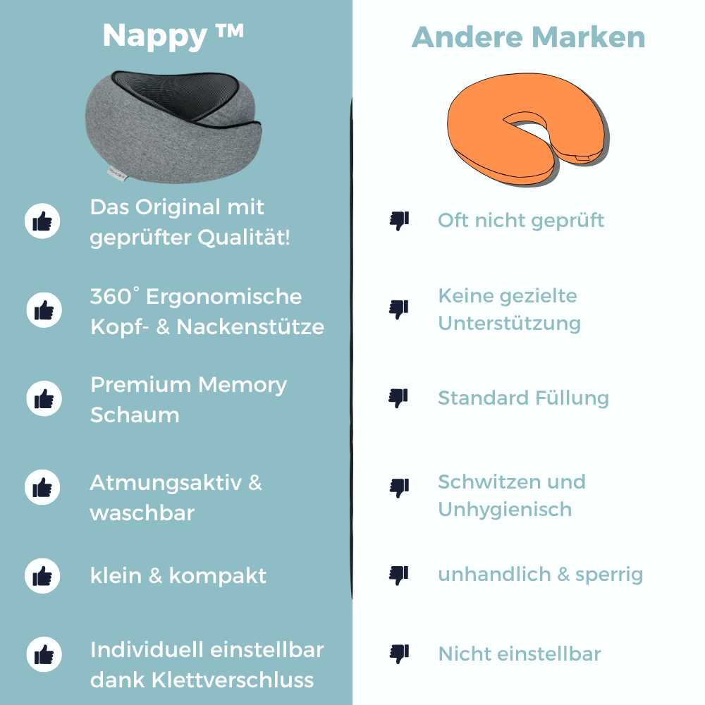 Keine Nackenschmerzen mehr, ich schwöre auf auf mein Nappy Reisekissen!